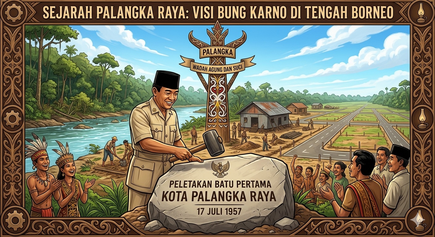 PALANGKA RAYA – Berbeda dengan kota-kota besar di Indonesia yang umumnya tumbuh dari bekas pusat pemerintahan kolonial, Kota Palangka Raya berdiri sebagai simbol kemandirian bangsa. Kota ini dirancang dari nol di tengah belantara Kalimantan sebagai perwujudan visi besar Presiden pertama RI, Soekarno, untuk memiliki pusat pemerintahan yang murni dibangun oleh tangan anak negeri.
